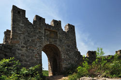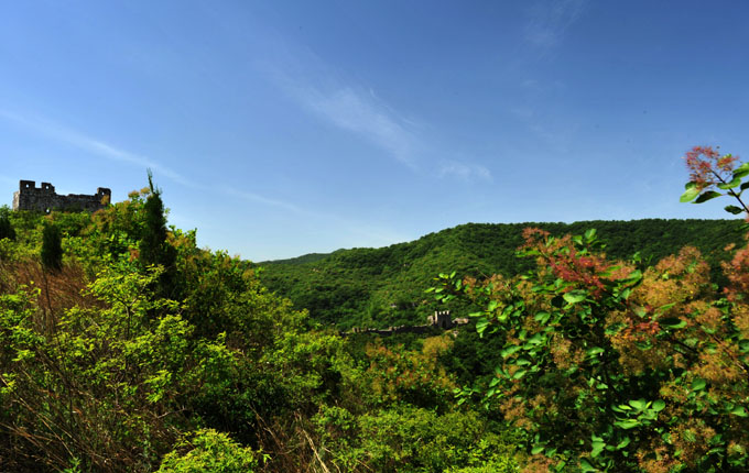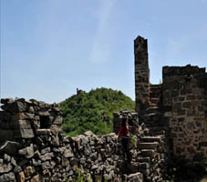 鹿耳寨,在耍峪与醋峪之间的山峰上,其峰峻绝,上有泓水,四面壁立,只有一条小径可通寨内。